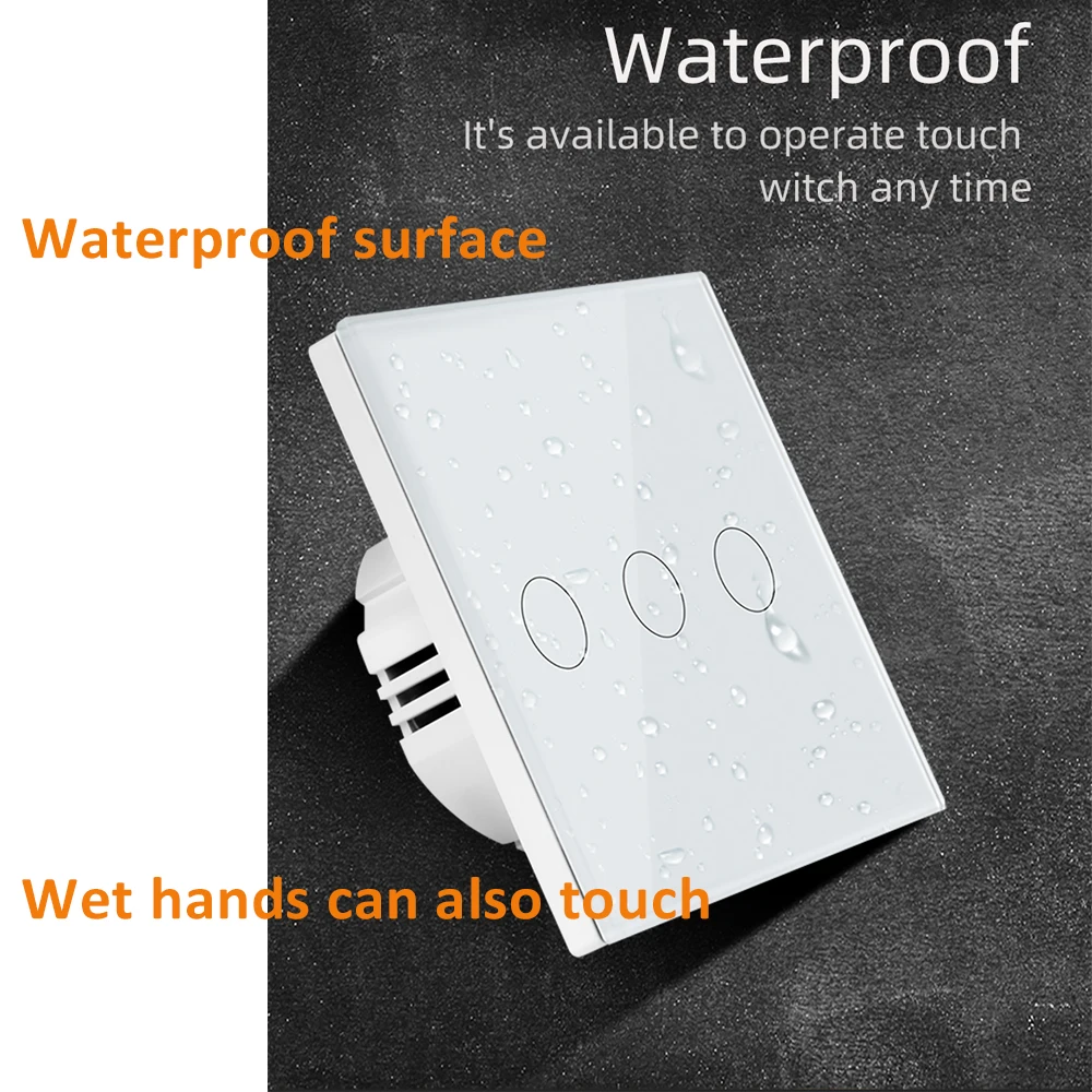 Сенсорный выключатель с панелью из закаленного стекла, 110 В, 220 В переменного тока, настенный светильник ключатель света, стандарт ЕС, 1 комплект, 2 комплекта, 3 комплекта