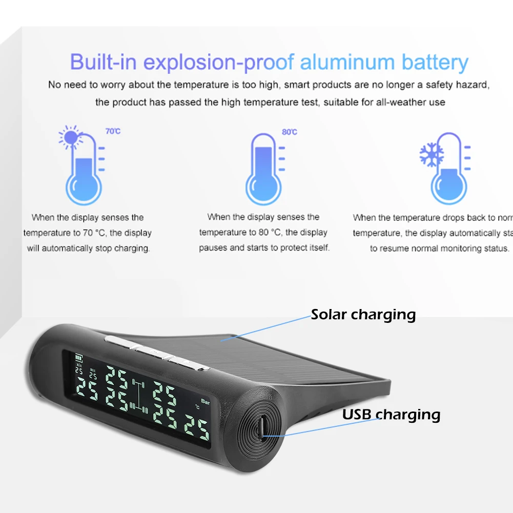 5V Солнечный грузовик давления воздуха в шинах ЖК-дисплей Дисплей 6...