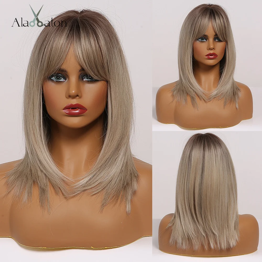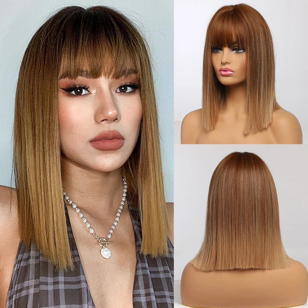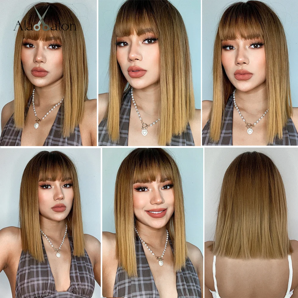 Парик ALAN EATON Омбре из коричневого золотистого цвета, короткие прямые волосы, парики Лолита БОБО с челкой, синтетические парики для женщин, косплей, термостойкие