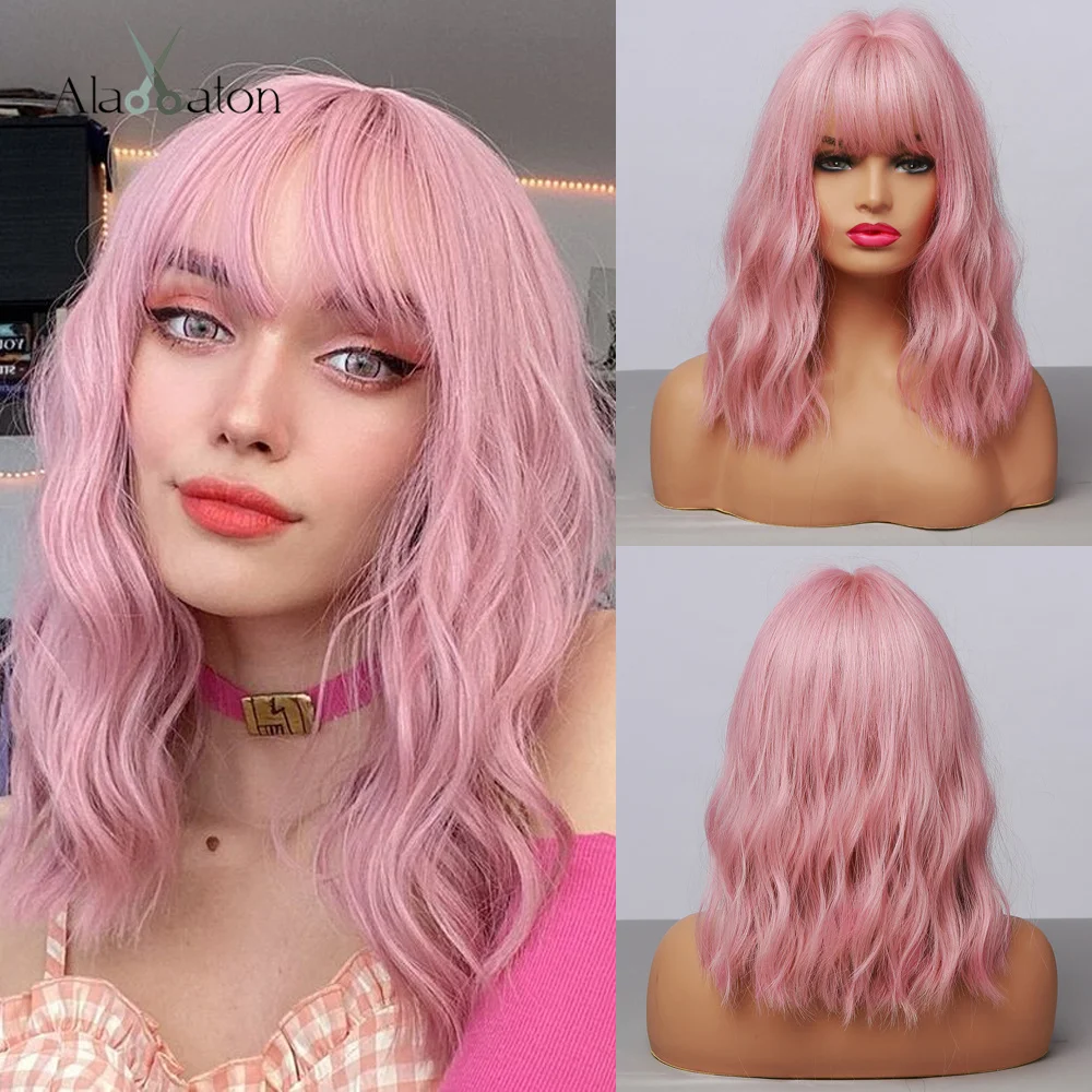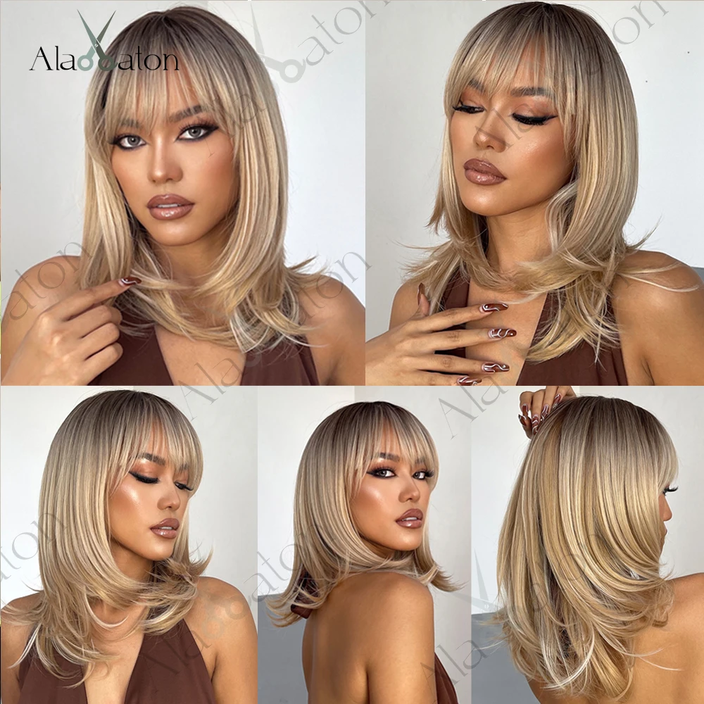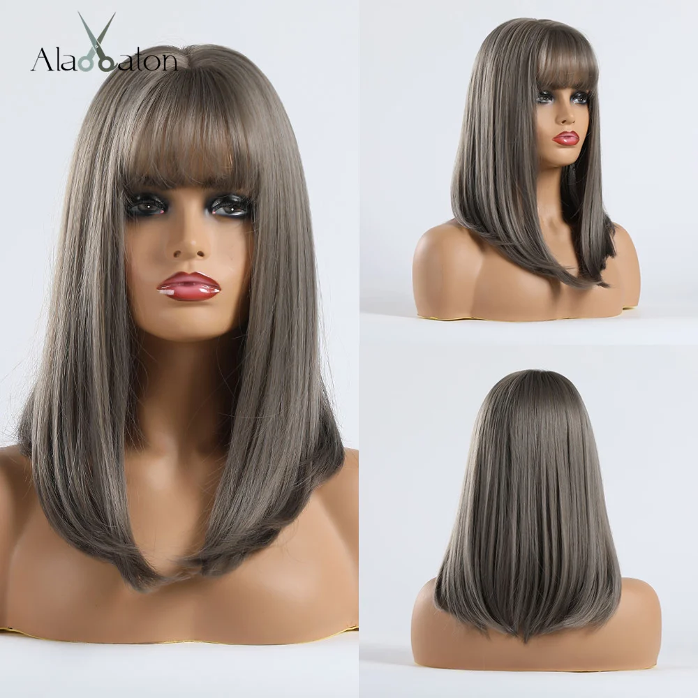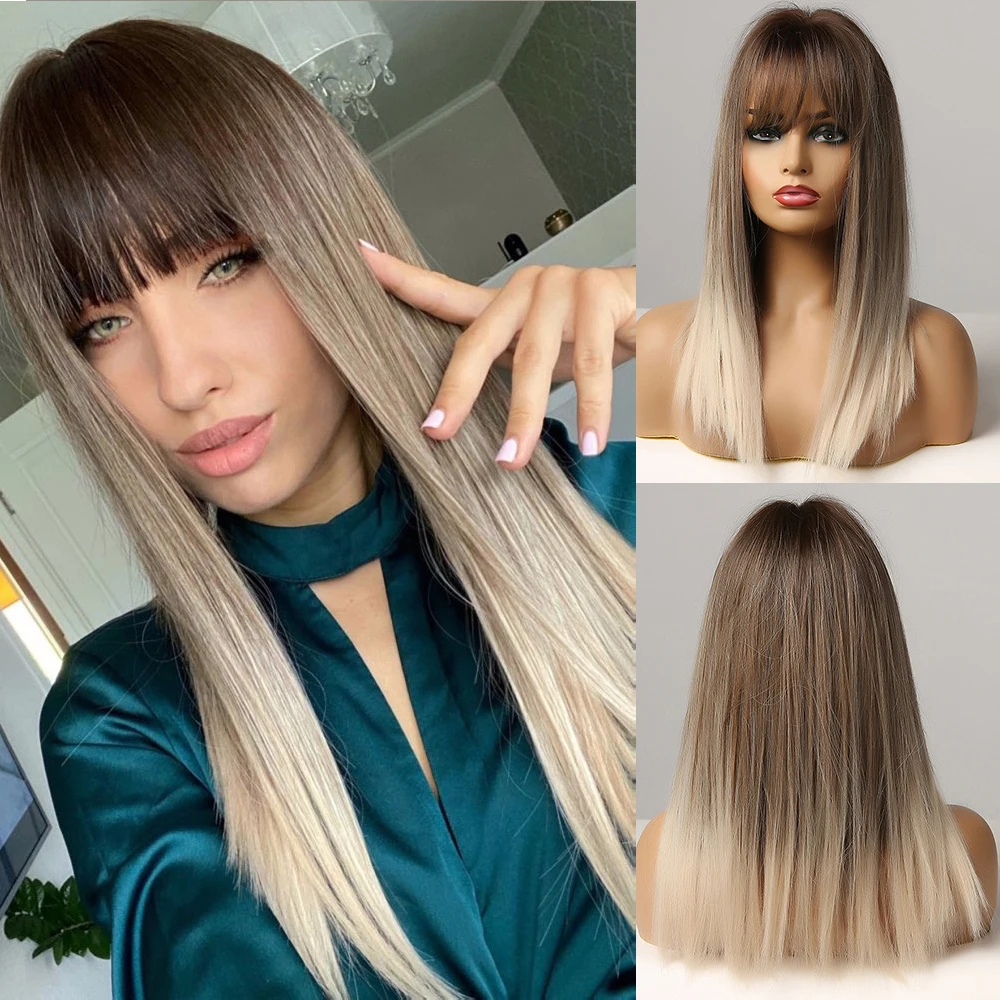 Парик ALAN EATON Омбре из коричневого золотистого цвета, короткие прямые волосы, парики Лолита БОБО с челкой, синтетические парики для женщин, косплей, термостойкие
