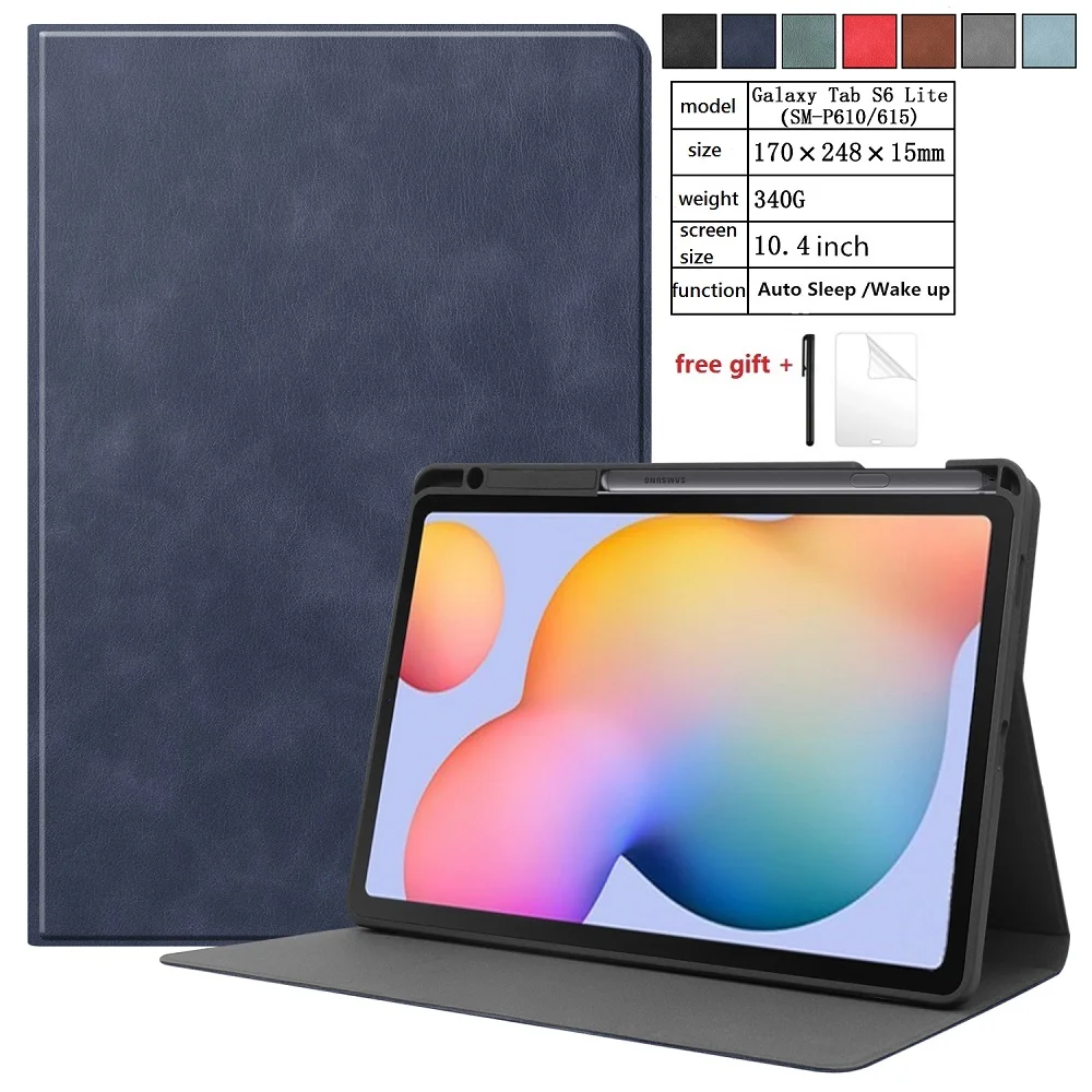 Чехол для Samsung Galaxy Tab S6 Lite 10,4 дюймов 2020 с держателем ручки SM-P610 SM-P615 из искуственной кожи на кнопке с подставкой противоударный чехол для планшета защитный корпус