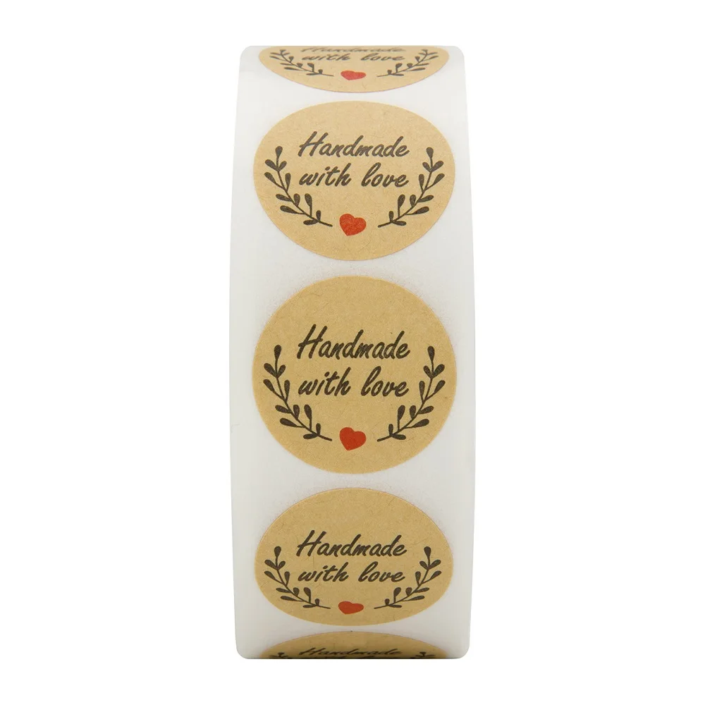 500 шт.рулон, стикеры ручной работы с надписью Handmade With Love