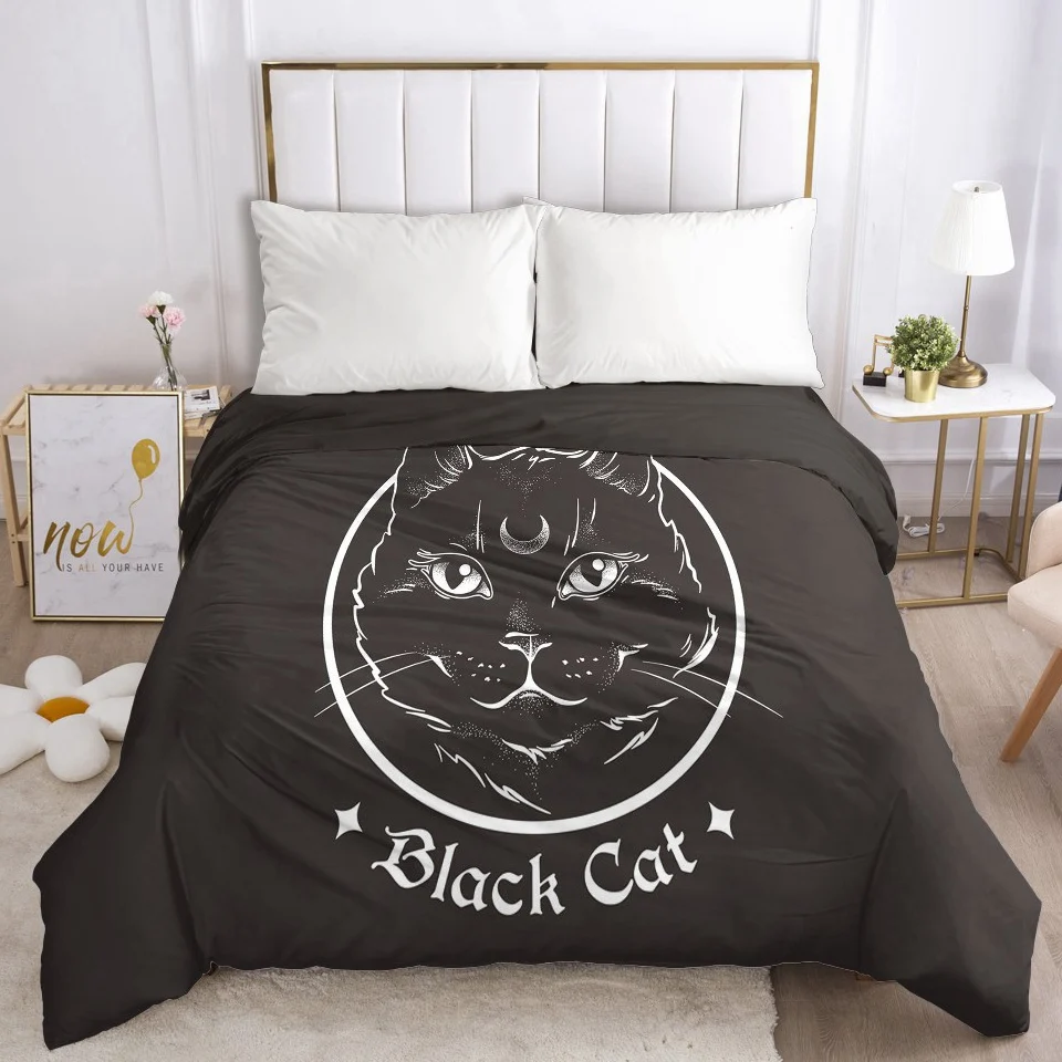 Комплект постельного белья с рисунком кота, белый пуховый пододеяль...