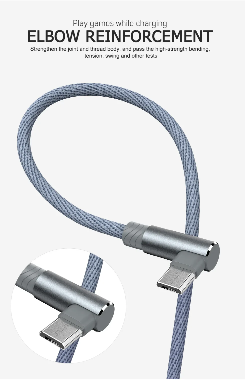90 градусов микро USB кабель Шнур зарядное устройство провод для передачи данных для Samsung A10S M10 S7 Huawei Honor 10i 20i Redmi Note 4 4X мобильный телефон Быстрая зарядка 1 м 2 м 3 м Android универсальный Microusb