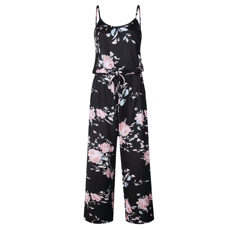 Женский Летний комбинезон без рукавов, модный сексуальный комбинезон в стиле бохо с цветочным принтом, свободные брюки, 2020