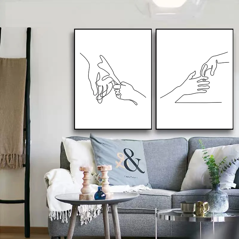 Настенное искусство счастливая семья Холст Живопись Искусство ручной росписи линии любовь ребенок скандинавские постеры для детей Детская комната Декор настенная роспись