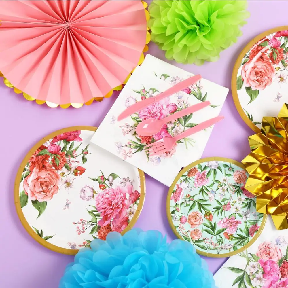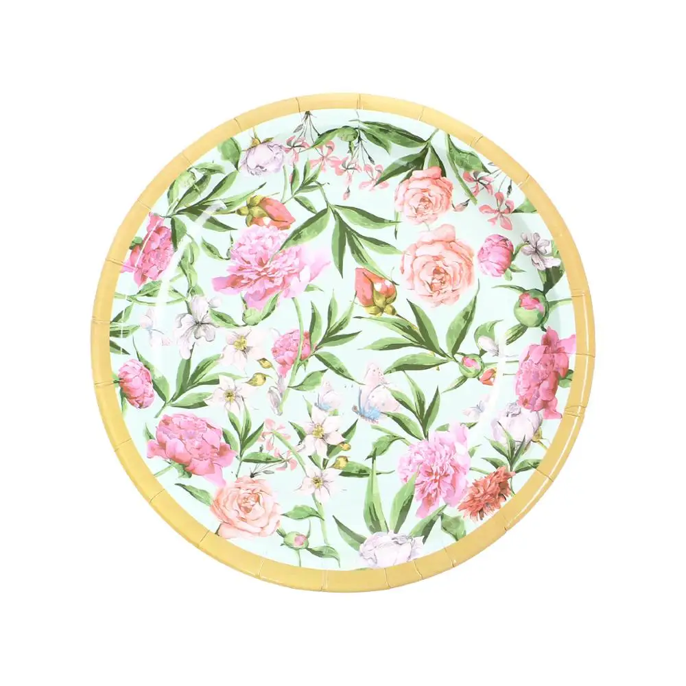 Гавайская одноразовая посуда для сада, бумажная тарелка с цветами, ...