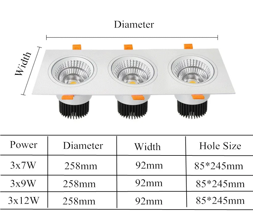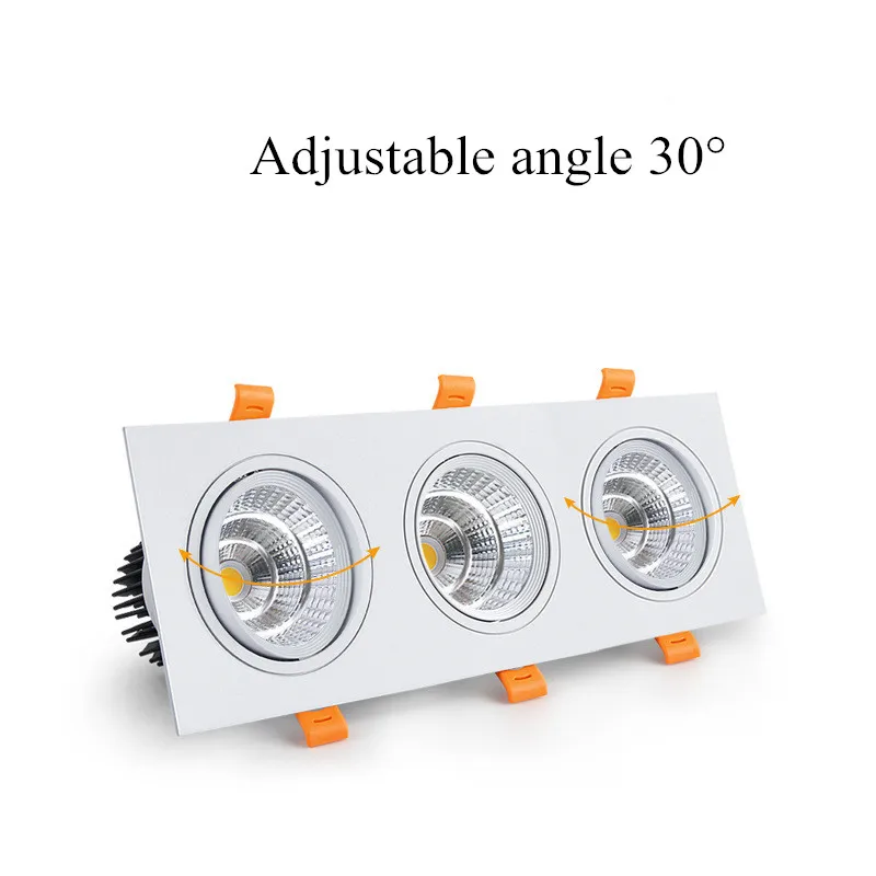 Супер яркий Встраиваемый светодиодный светильник с регулируемой яркостью, с 3 головками, квадратный, COB, 3x7 Вт, 3x9 Вт, 3x12 Вт, Светодиодный точечный светильник, потолочный светильник, AC 110 В, 220 В