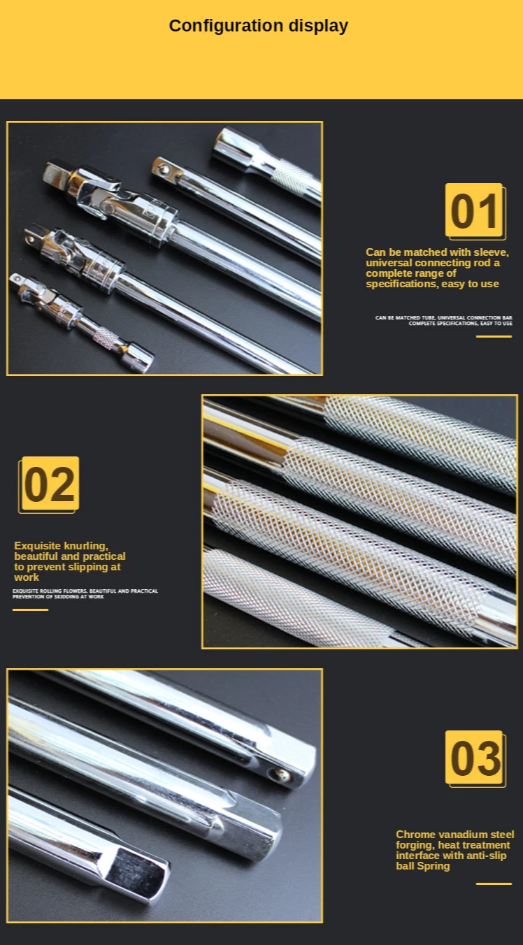 Удлинитель для торцевого ключа с храповым механизмом 14 дюйма, 38 дюйма, 12 дюйма, 5075100150200250 мм