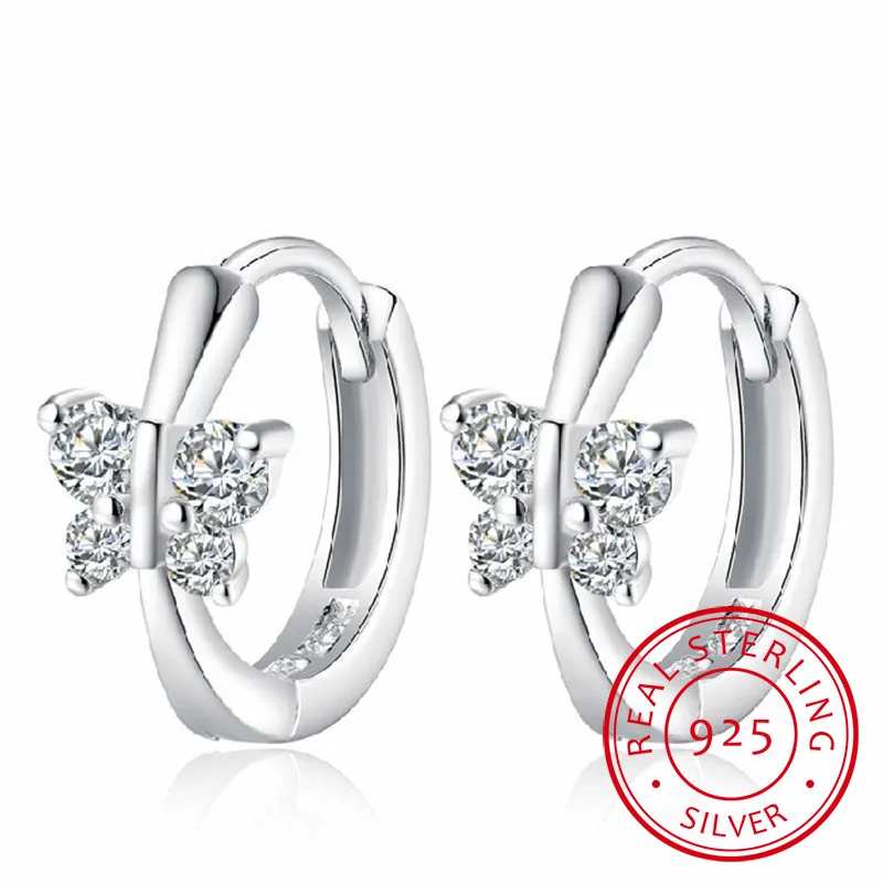 Милые серьги-кольца с бабочкой из стерлингового серебра 925 пробы, маленькие круглые серьги-кольца для женщин, детей, девочек, детей