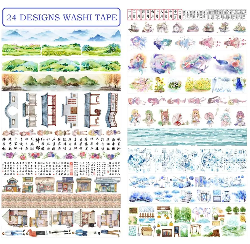 24 конструкции лента Washi пейзаж Поэзия девочек планировщик японский Клей DIY маскировки бумажные этикетки наклейки дневник в стиле Скрапбукинг подарок