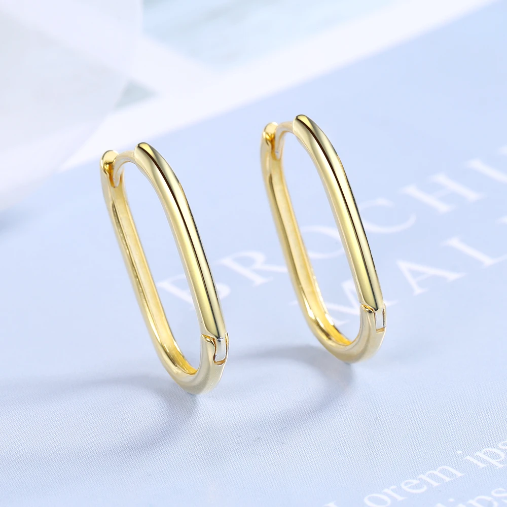 Геометрические эллиптические серьги-кольца для женщин, гладкие медн...
