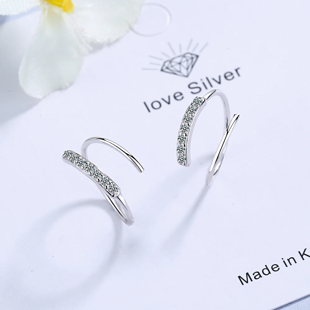 Изысканные однорядные серьги-кольца с кубическим цирконием из стерлингового серебра, золотые серебряные волнистые сережки, сережки с круглым вырезом для женщин, S-E972 для девочек