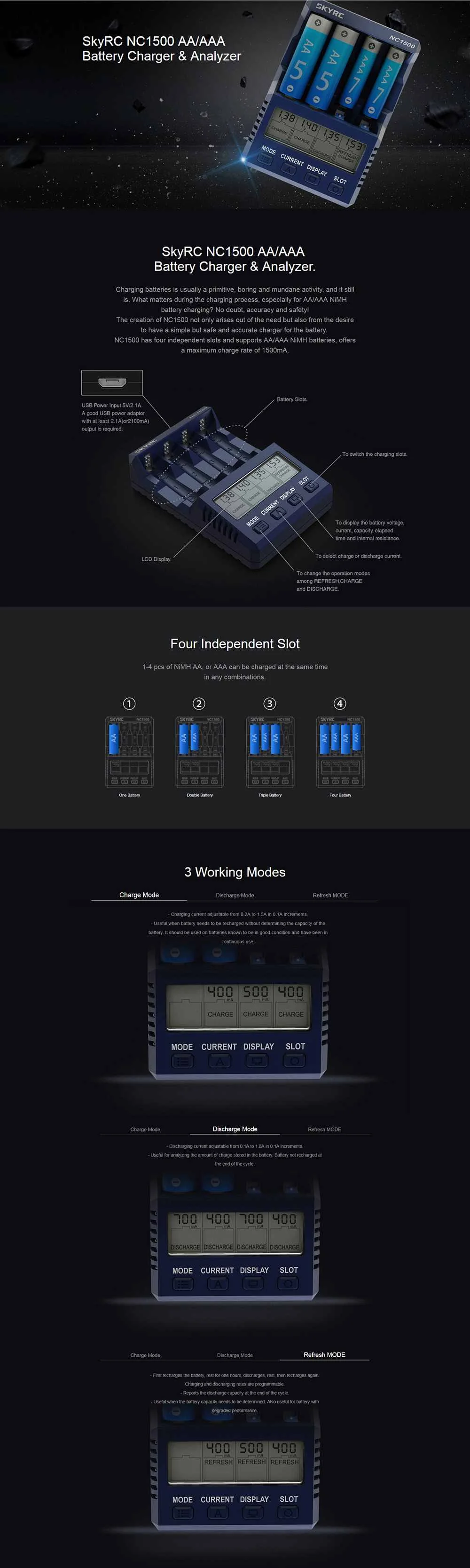 Новинка SKYRC NC1500 5 в 2,1 А 4 слота ЖК-дисплей зарядное устройство для батарей AA AAA и анализатор NiMH батареи зарядное устройство разрядка