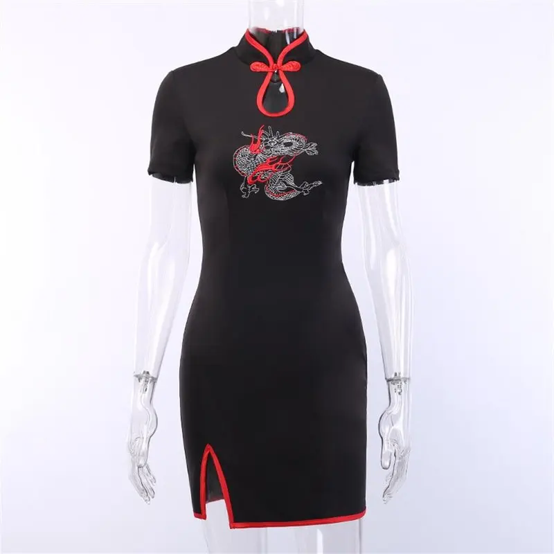 Тёмно-черное ретро-платье Чонсам с вышивкой дракона в стиле Харадзю...
