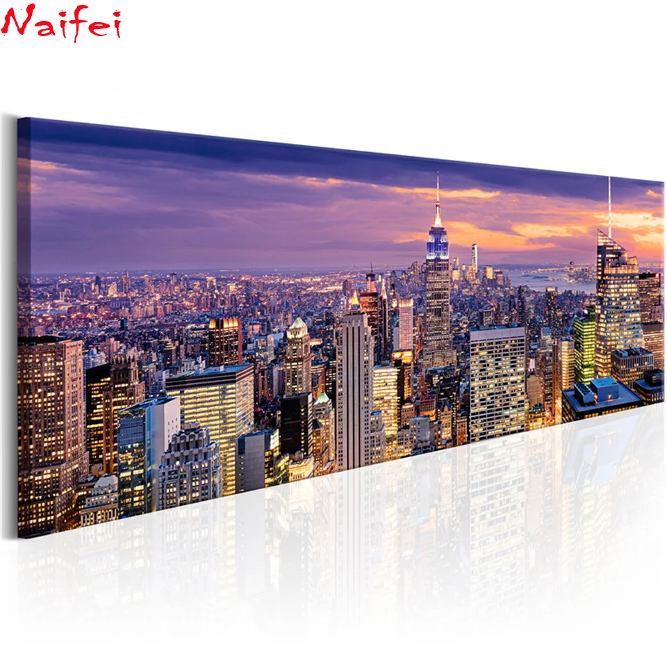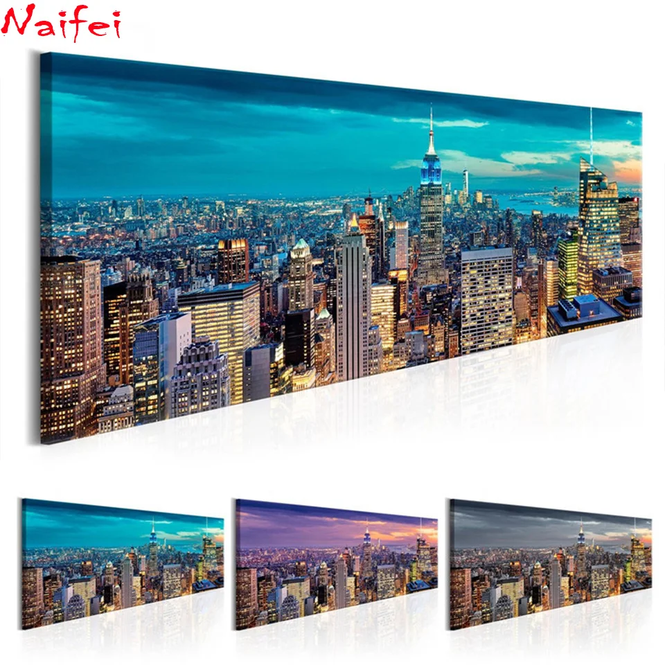 Алмазная живопись большого размера с видом на город Нью-Йорк, полностью квадратная круглая дрель, современные картины для украшения гостиной, домашний декор