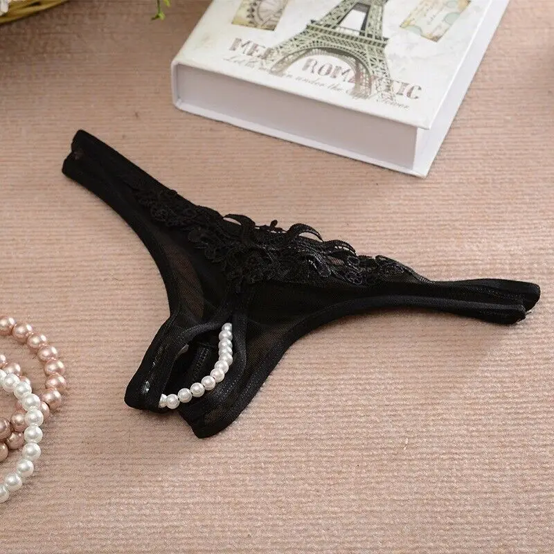 Подробная информация о сексуальные стринги трусики с открытой промежностью нижнее белье жемчужные ночные кружевные стринги