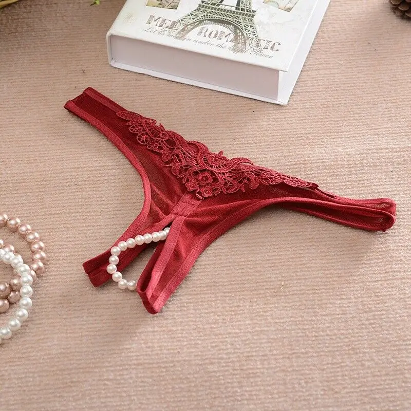 Сексуальные трусики-стринги, нижнее белье с открытой промежностью, жемчужные ночные кружевные стринги