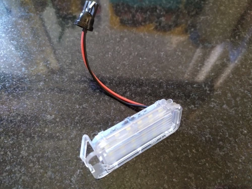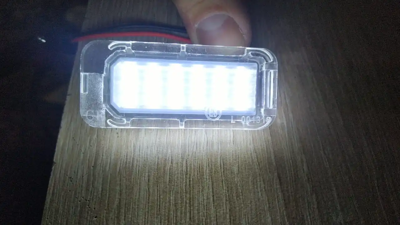 Отличная светодиодная подсветка номера. Сначала показалось конструкция не надежная и размер маловат. Но установив, увидел, что встало хорошо не выпадает и хорошо сидит на месте. Прочность тоже в норме. Подключал к лабораторнику и проверил то, что есть ограничение по току. При 12В ток 0.11 мА и при 14,3В ток такой же. Так что завод авто не должен их убить и перегреваться не будут. Соответственно должны выработать свой ресурс.