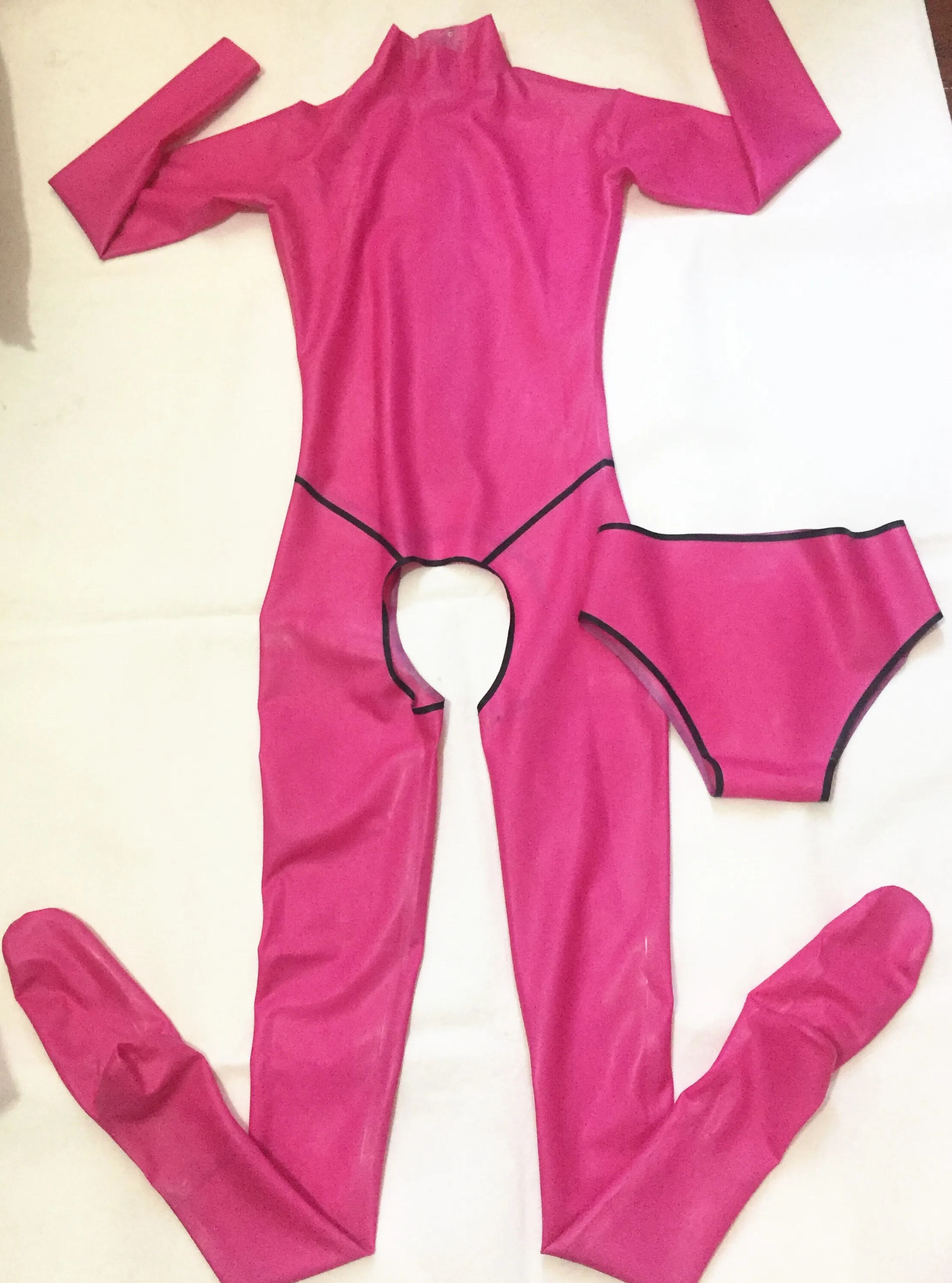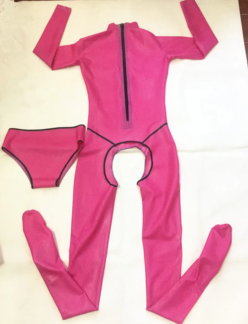 Розовый латексный комбинезон без косточек с латексными носками латексный резиновый костюм боди облегающие латексные резиновые костюмы для девочек (с нижним бельем)