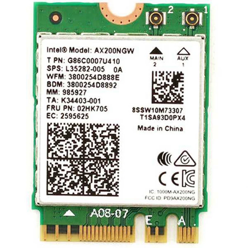 Беспроводная-AC AX200 Ultra Wi-Fi Ultra имеет ультра-опытWi-Fi 6 AX200 поддерживает 802.11ax через 2x2 MU-MIMO антенны через диапазоны 2,4 ГГц и 5 ГГц.AX200 также поддерживает Bluetooth 5,0.Максимальная пропускная способность, поддерживаемая Wi-Fi 6 AX200,-это быстрая 2,4 Гбит/с (160 МГц),Информация®AX200NGW может обеспечить гигабитную скорость загрузки 1 и значительно улучшить ваш опыт подключения дома, работы или перемещения.ОписаниеСамый дешевый бренд:Модель: AX200NGWДвухдиапазонный: 2,4 ГГц/5 ГГц (160 МГц)Скорость до 1730 Мбит/с (маршрутизатор должен быть на 160 МГц);Скорость до 2400 Мбит/с (5 ГГц), 574 Мбит/с (2,4 ГГц) (маршрутизатор должен быть на 160 МГц, он поддерживает 802.11ax)С Bluetooth 5,0, совместим с MU-MIMONGFF интерфейс (M.2): 22*30 ммПоддерживаемые операционные системы: они работают только на Microsoft Windows 10*64 bit,Примечание: он не совместим с Windows 7/8/8. ОдинСовместим с: Может использоваться в Samsung / Dell / Sony / ACER / ISUS / MSI / Clevo / Terransforce / Hasee и т. д. (не включая Lenovo и HP, если он может быть использован после перезаписи Белого списка).Я не поддерживаю Ноутбук IBM Thinkpad / Lenovo / HPЦвет: зеленыйМатериал: PCBРазмер: 22*30 ммПосылка:1 * AX200NGW Wifi карта2 * антенный кабельТолько вышеуказанная посылка, другие товары не включены.Примечание: светильник и различные дисплеи могут привести к тому, что цвет товара на картинке немного отличается от реального. Допускается погрешность в измерениях +/- 1-3 см.