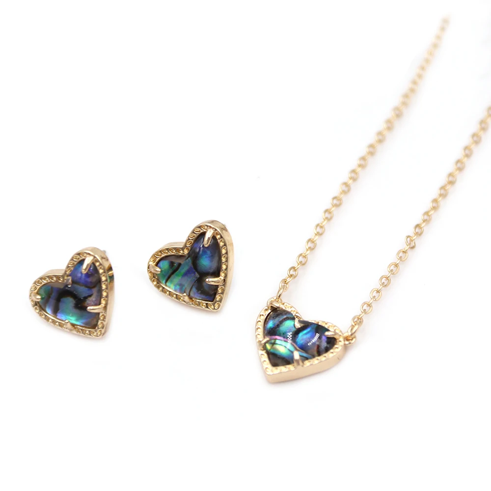 2020 коричневый Abalone 3D сердце любовь камень инкрустация мини сердце кулон ожерелье прекрасный смола жемчужное сердце кулон ожерелье оптовая продажа