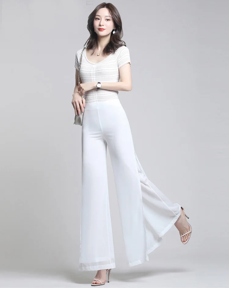 Брюки женские шифоновые, широкие, с Боковым Разрезом, черные, белые