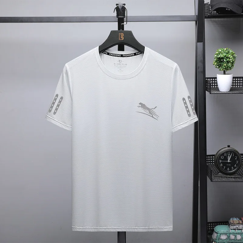 Футболка мужская 6XL 7XL 8XL, летняя мужская футболка, эластичная футболка для фитнеса с принтом, мужские повседневные быстросохнущие футболки 9116