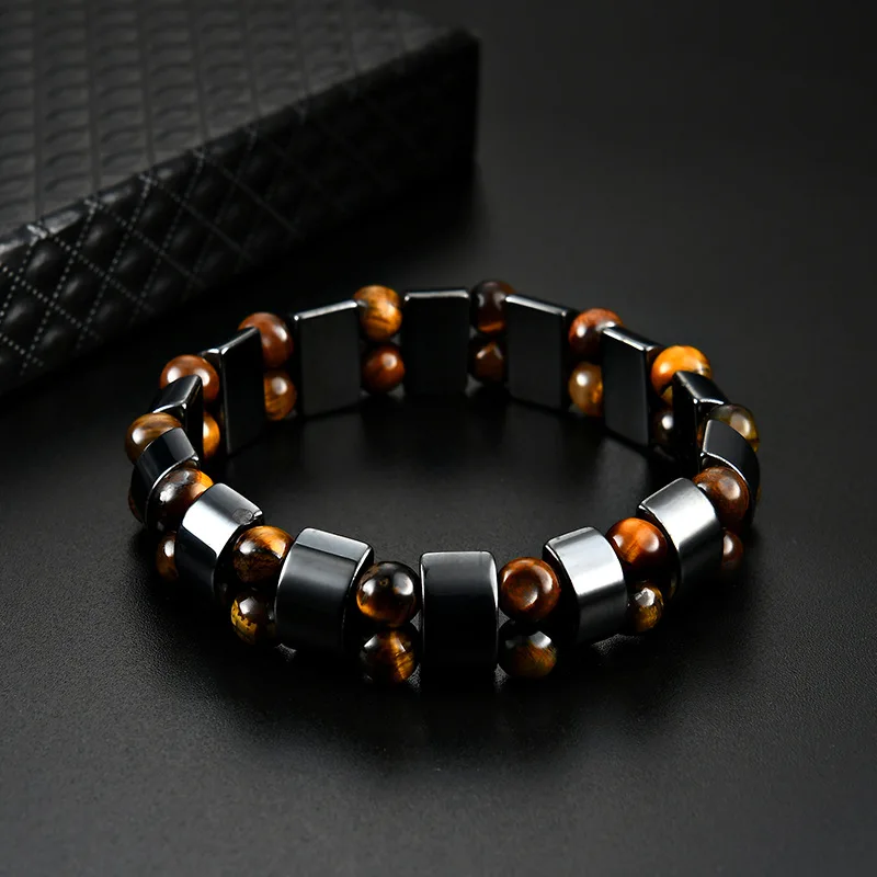 Браслеты из тигрового глаза и гематита мужские браслеты с подвесками для женщин, ювелирные изделия из двух Гематитовых тигровых глаз