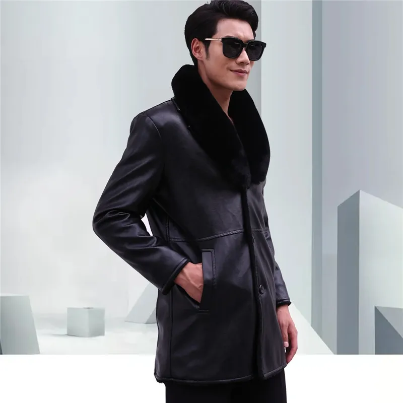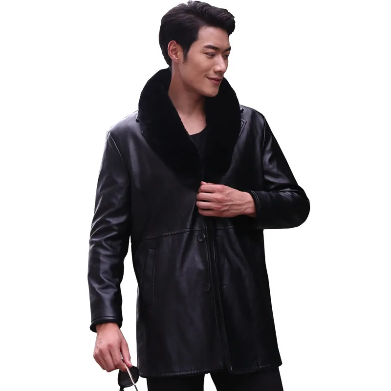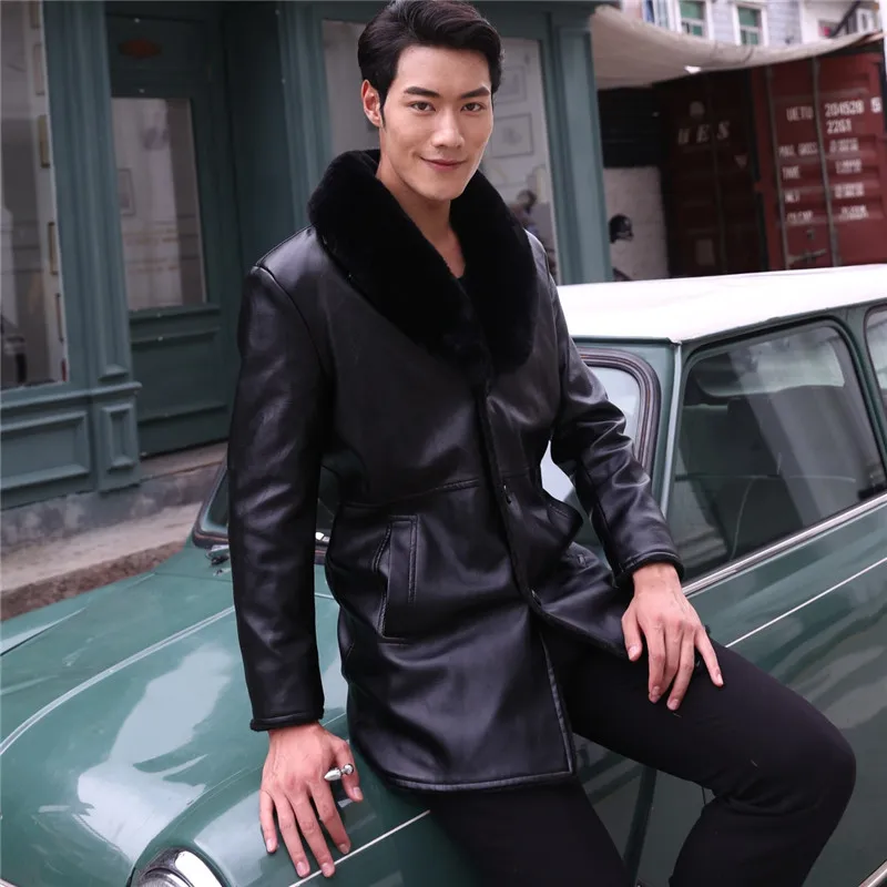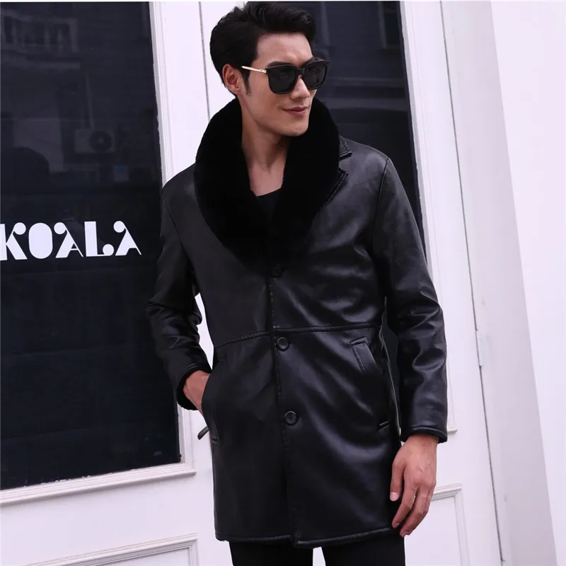 Ymwmhu Мужская роскошная кожаная куртка, Мужская однобортная деловая повседневная куртка из искусственной кожи, мужские Черные Длинные Куртки из искусственной кожи