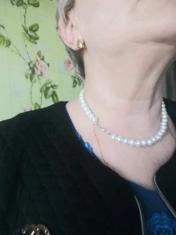 ожерелье смотрится красиво на шее, немножко тяжеловаты, но в остальном все́ меня устраивает , очень довольна выбором. спасибо продавцу