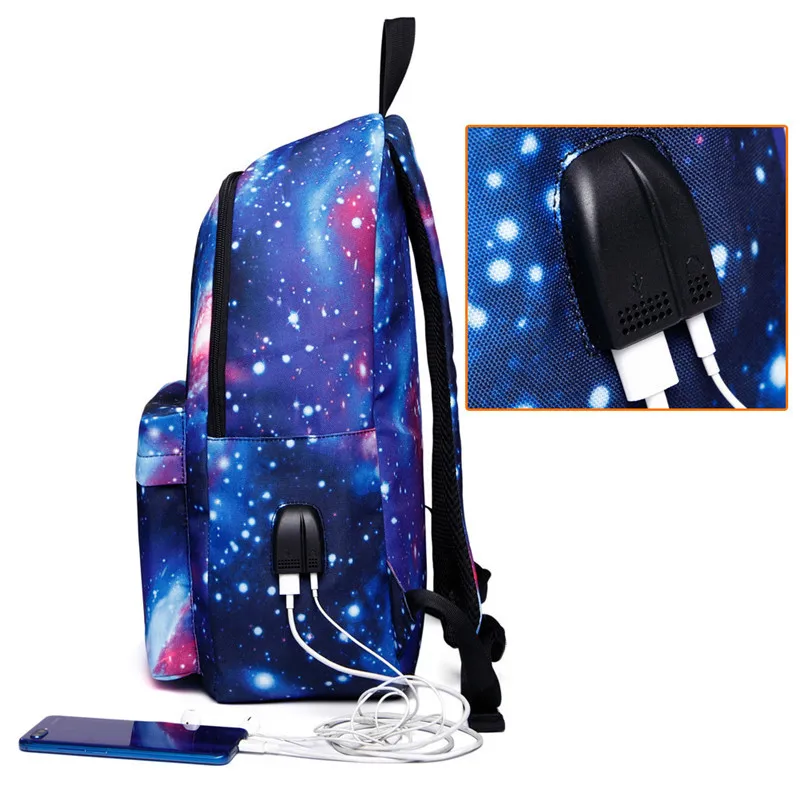 Рюкзак мужскойженский, разноцветный, с USB-разъемом для зарядки, с принтом в виде звезд, рюкзак небо