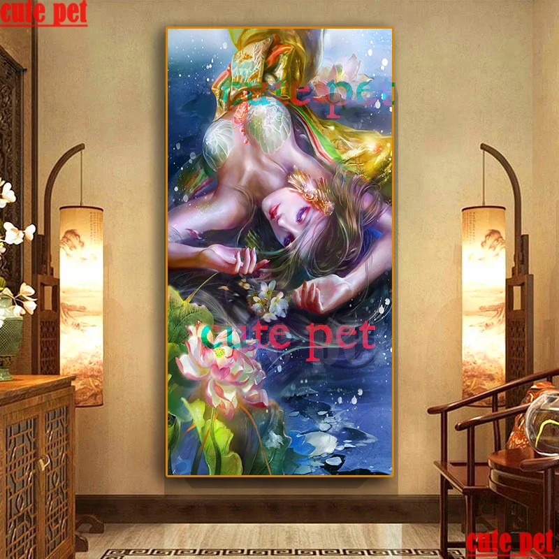 Большая мозаика 5D фантазия Русалка своими руками искусство Лотос п...