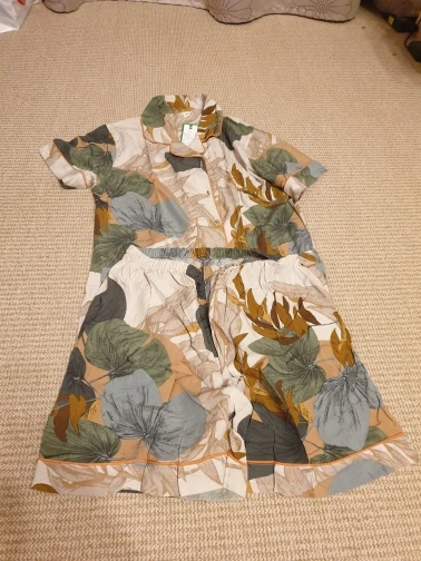Ткань очень приятная, стильный принт, размерная таблица точная. Но после стирки обязательно гладит иначе сильно теряется вид.