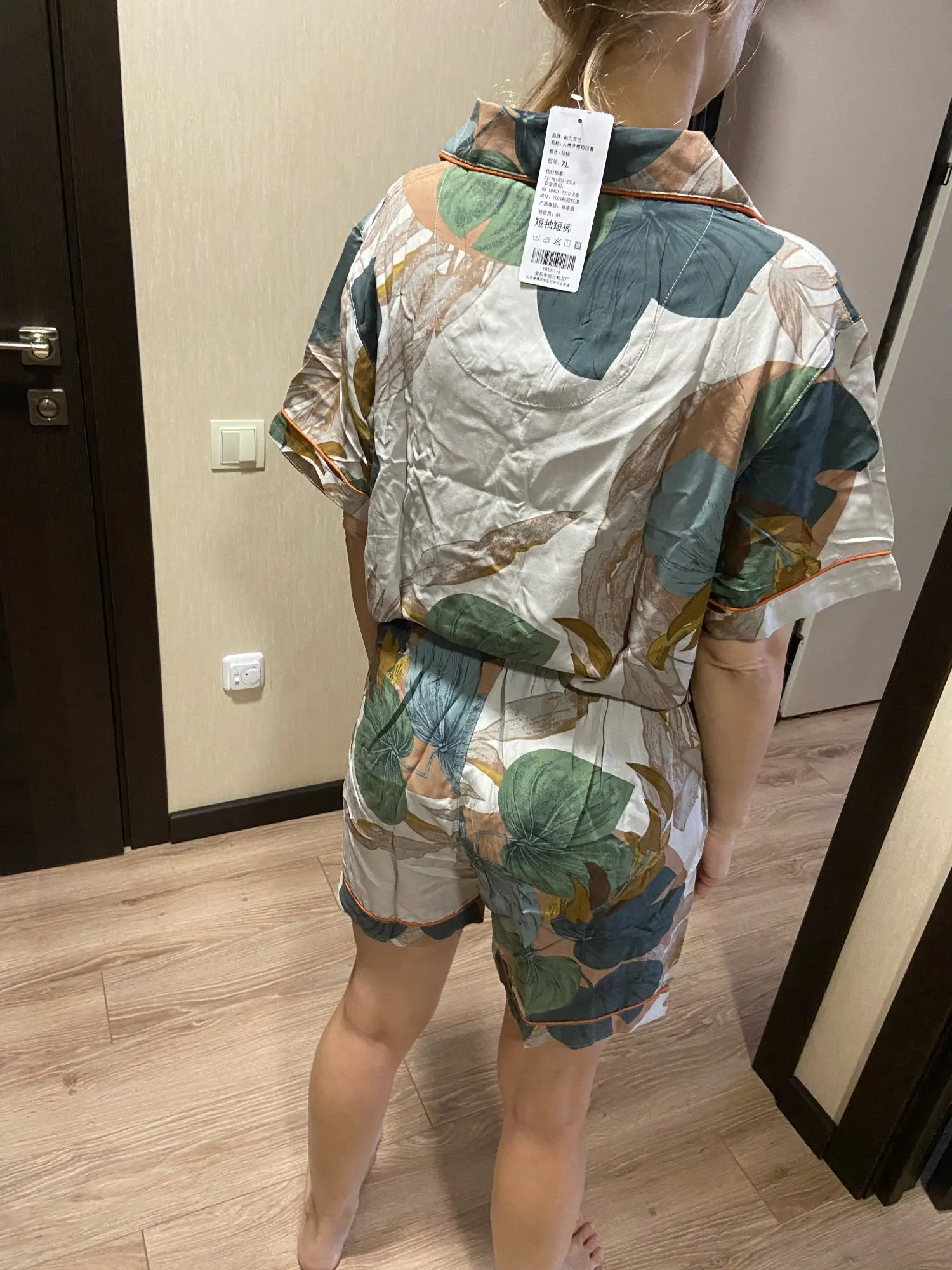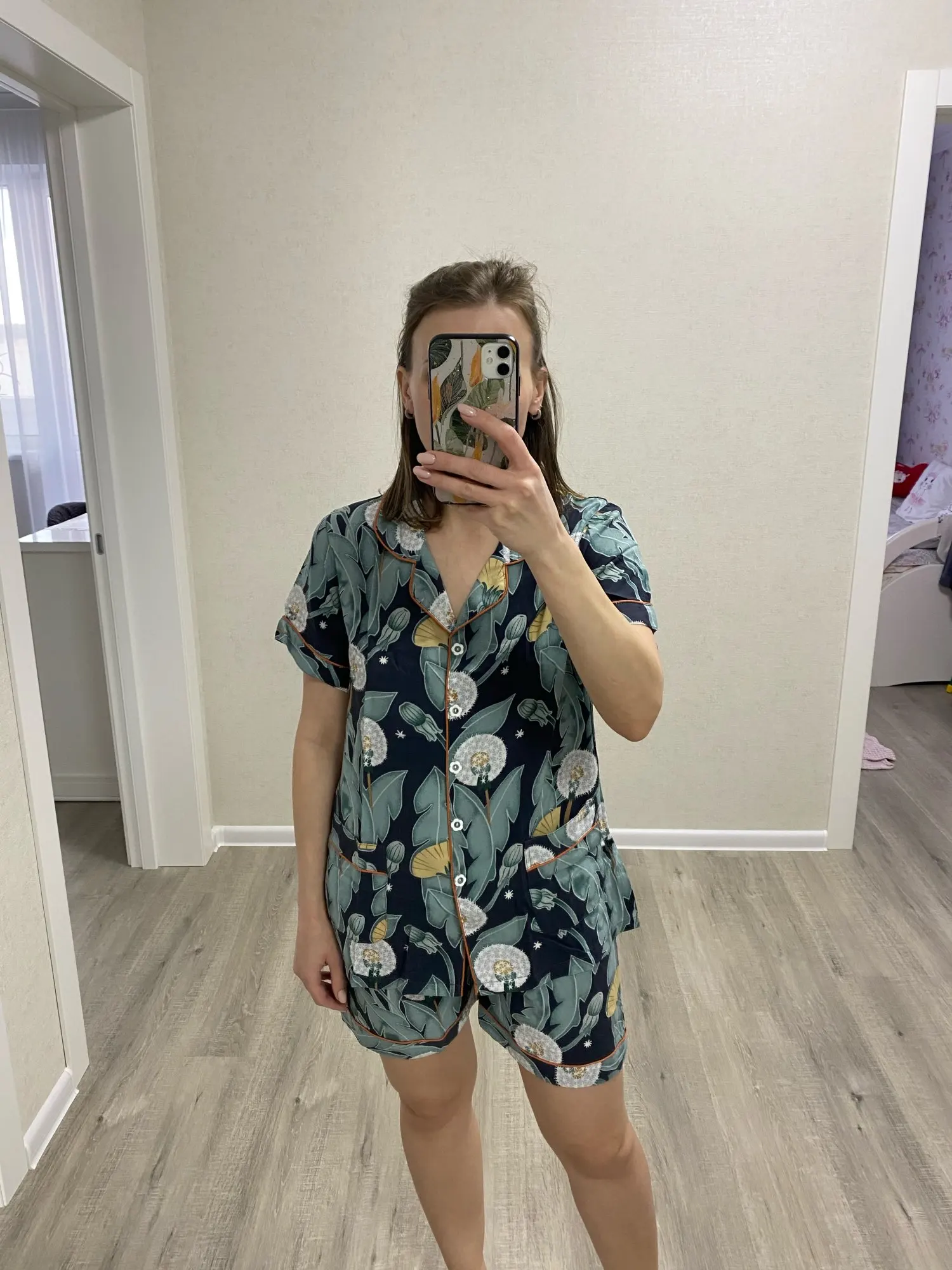 Покупка была совершена по Рекомендации моего любимого блогера @alishopping_guru 26.10, получила 20.11. Очень долго не отправляли. Пижамой в целом довольна. На свои параметры 92х77х92 заказывала размер L, подошло все идеально. Ткань вискоза, поэтому брать нужно с учетом того, что ткань не тянется. Пижамой очень довольна, заказала еще в подарок, только другой расцветки. Единственный недочёт, это неаккуратно сделан шов на шортах, но его не очень видно. С продавцом не общались, пижамку к покупке рекомендую. Спасибо продавцу.