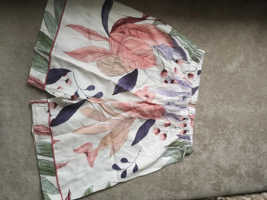 Очень доволен и доволен заказом! Товар точно соответствует описанию. Высококачественный хлопок, мягкий, Цветочный, не прилипает к коже. Нет кривых ниток. Все швейные работы прямые. Нет свободной нити и дополнительные нитки обрезаны. Я 5'1 "около 100 фунтов и средний размер идеально подходит. Обхват талии шорт составляет около 24 дюймов. Обхват груди составляет 34 дюйма, а внизу-42 дюйма. Настоятельно рекомендую и куплю снова!