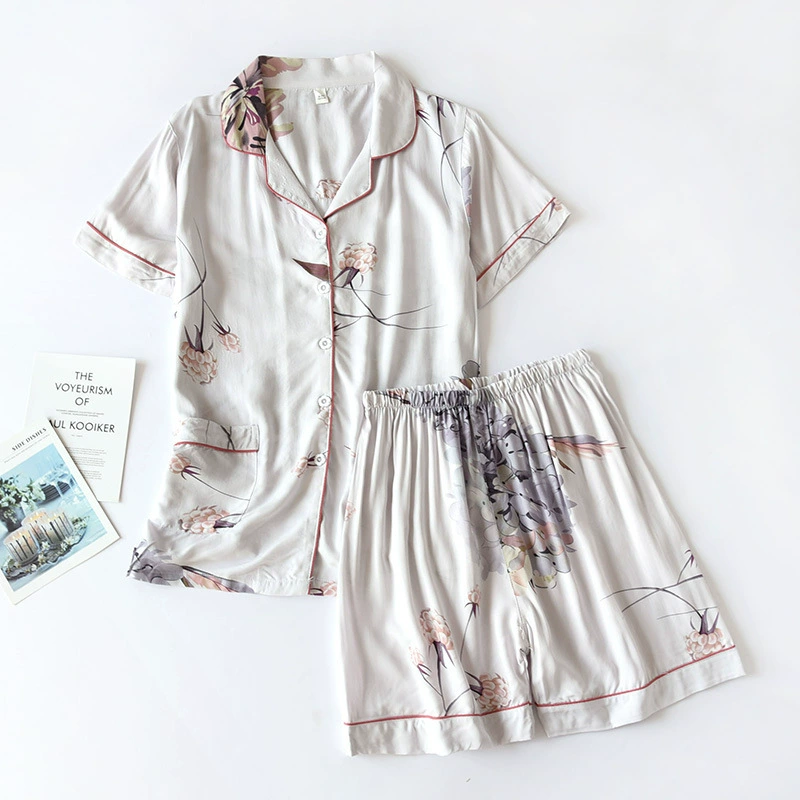 Комплект пижамный женский из двух предметов, шорты с коротким рукавом и принтом, для дома, размера плюс
