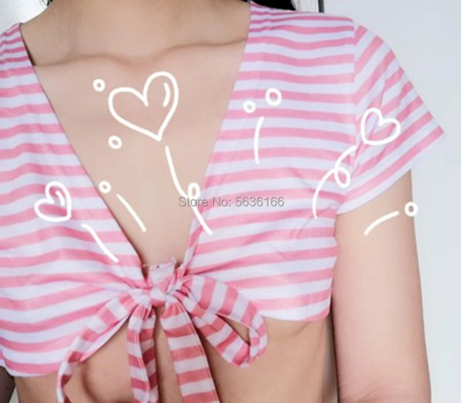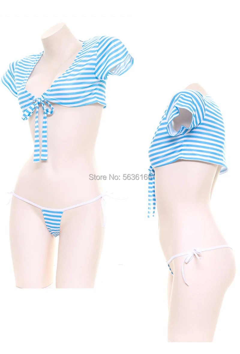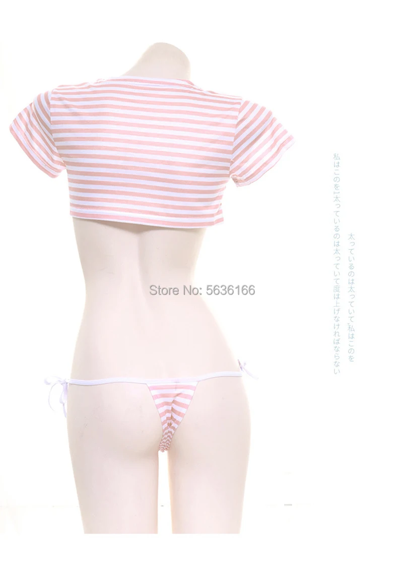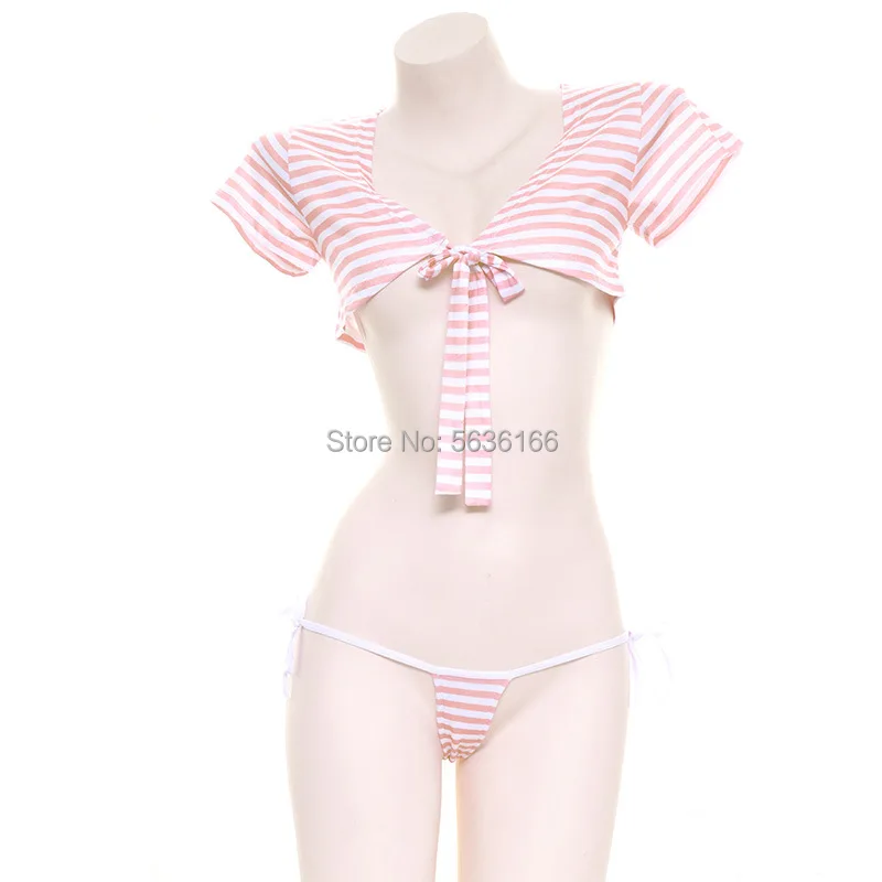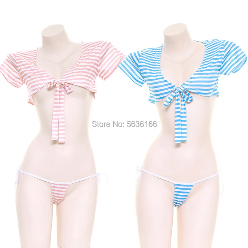 Комплект для косплея Kawaii, женский купальный костюм, пикантный купальник, розовый синий купальник в полоску, купальник, Эротическая пляжная одежда, купальный костюм
