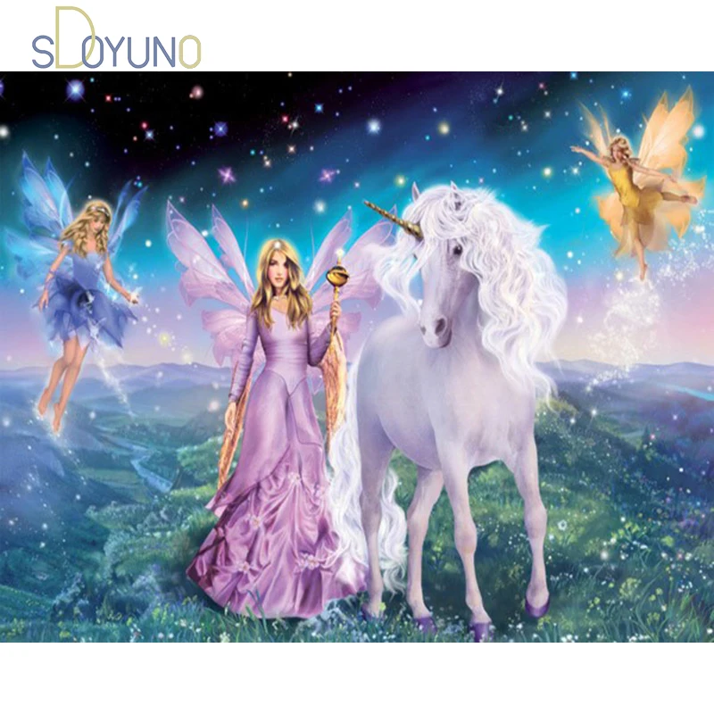 DIY живопись SDOYUNO по номерам с рамкой для взрослых, фэнтези, единорог, акриловые краски для живописи, уникальный подарок для художественного домашнего декора