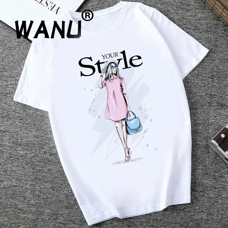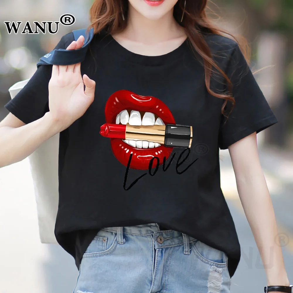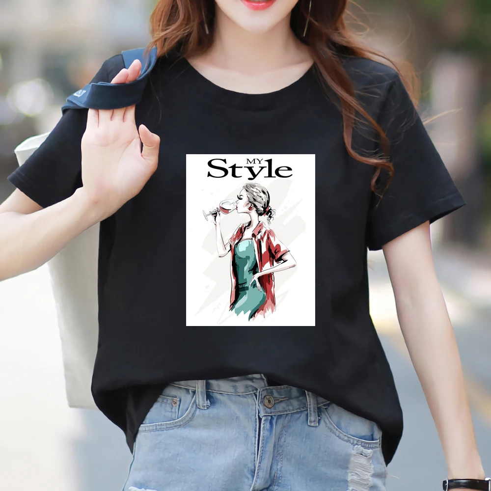 Женская футболка с коротким рукавом, с принтом, в Корейском стиле