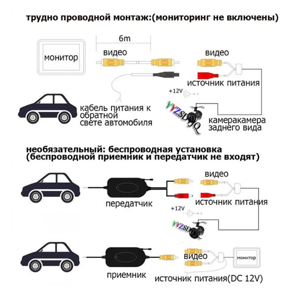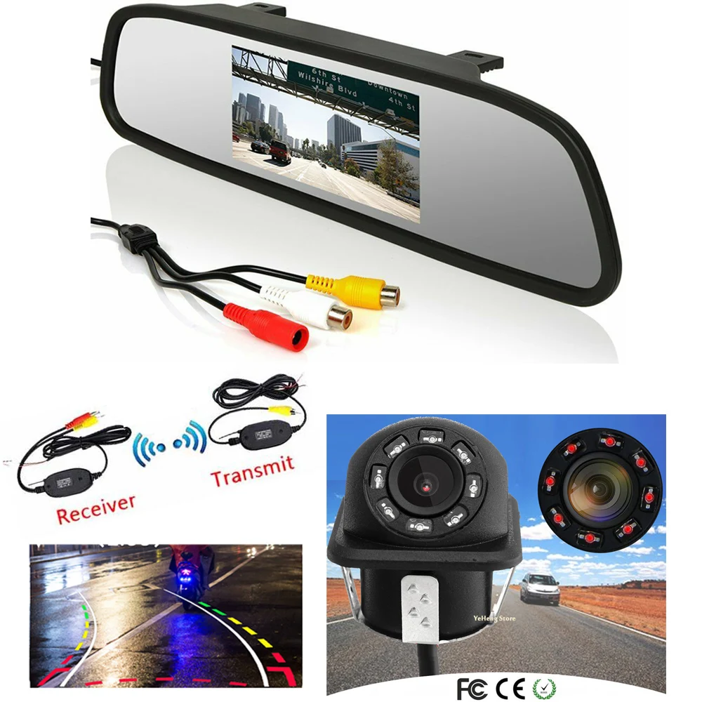Монитор YYZSDYJQ 4,3 "для автомобиля, HD LCD, беспроводная динамическая траектория, камера заднего вида, парковочный комплект, водонепроницаемая камера с ночным видением