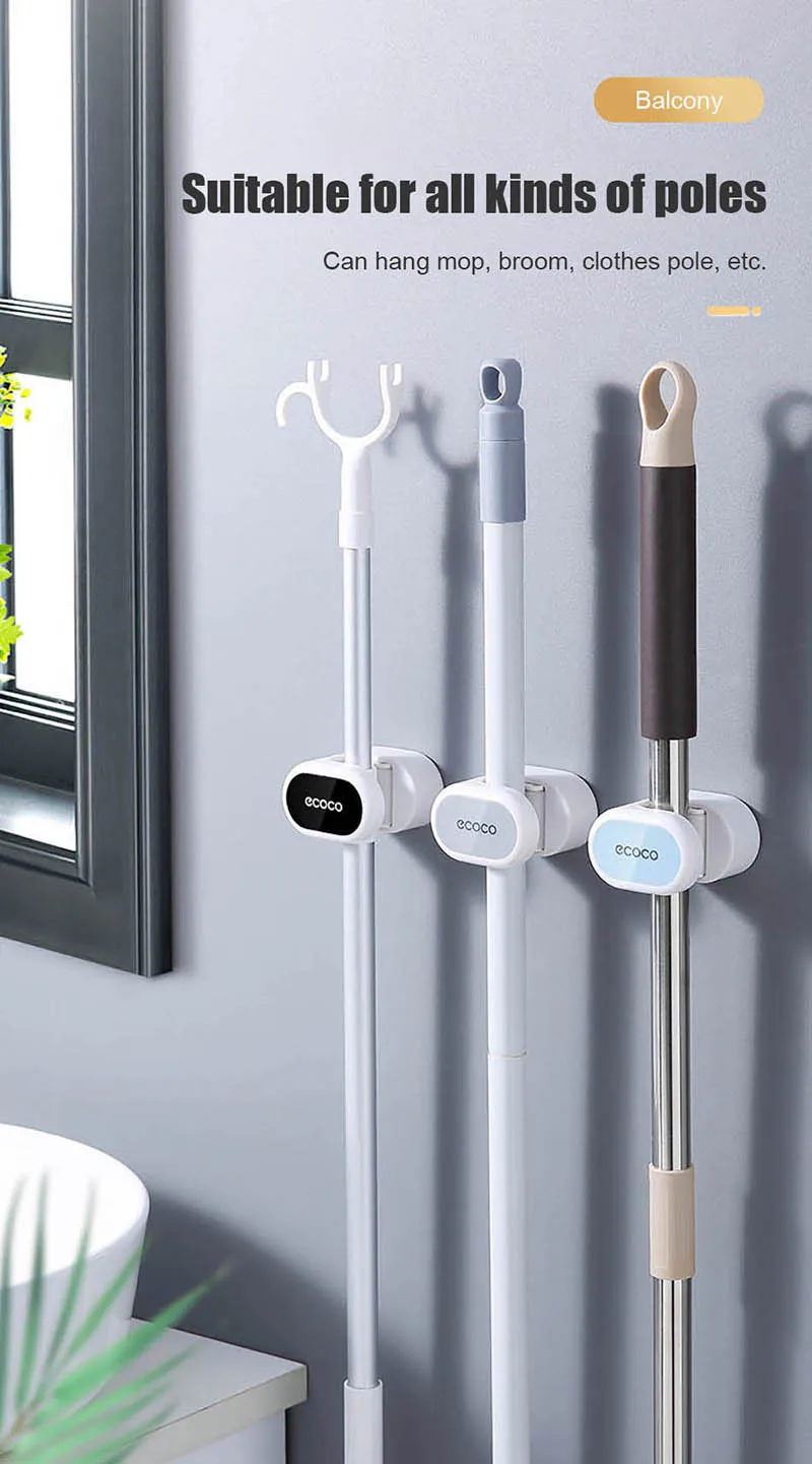 Настенный держатель для швабры, органайзер, вешалка для метлы, вешалка для хранения, бесшовный зажим для швабры, крючок, аксессуары для ванной, кухни