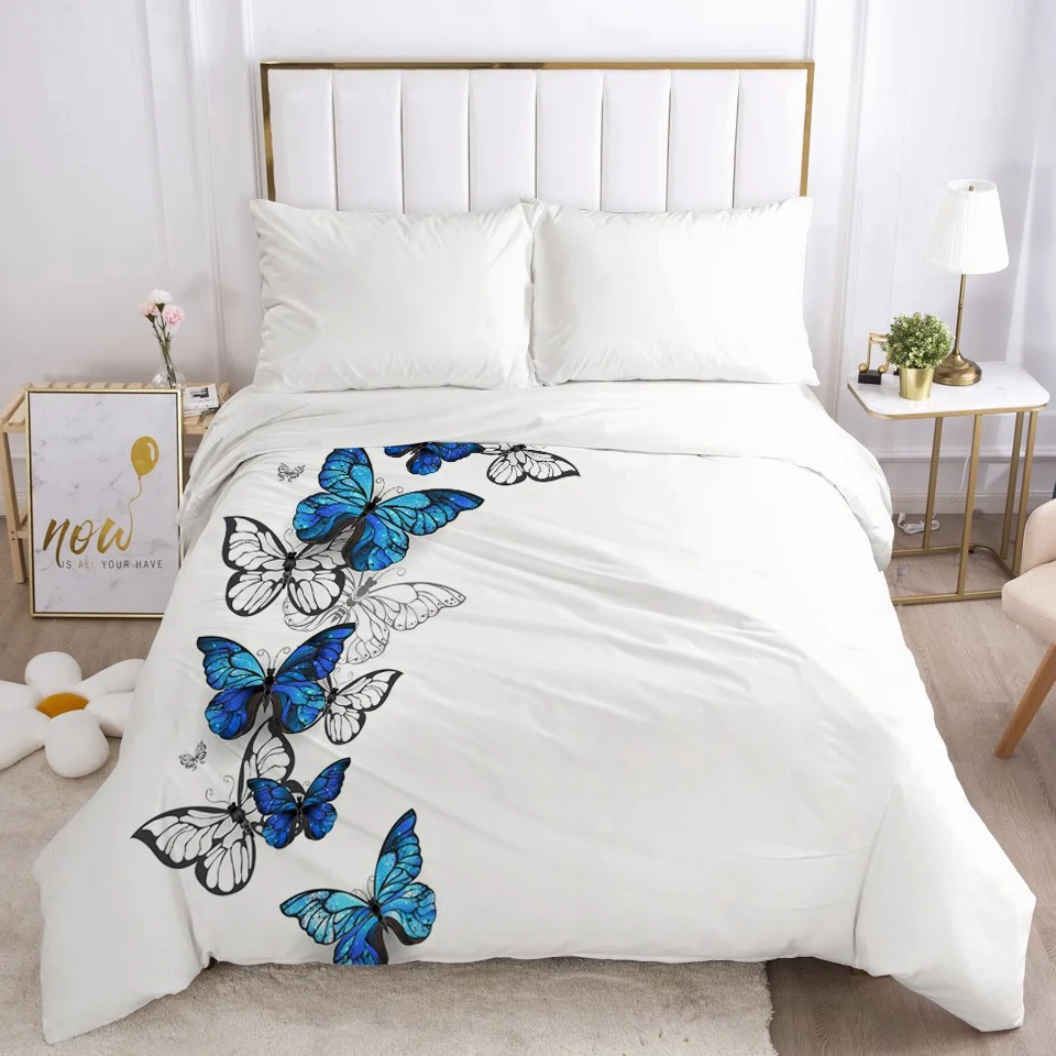 Пододеяльник с 3D принтом бабочек и цветов, размер 240x220, без нав...