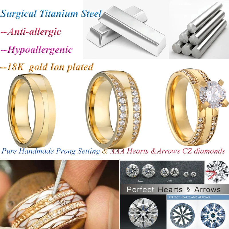 Золотое титановое кольцо для мужчин и женщин, 1 пара, для свадьбы, ...