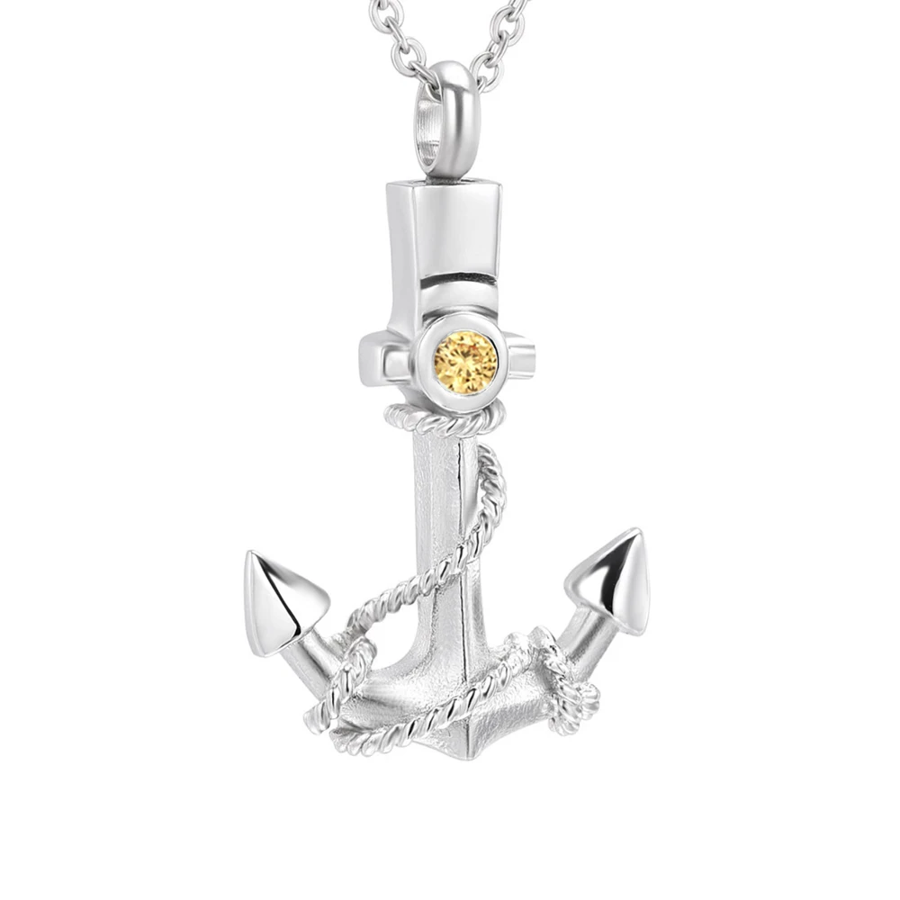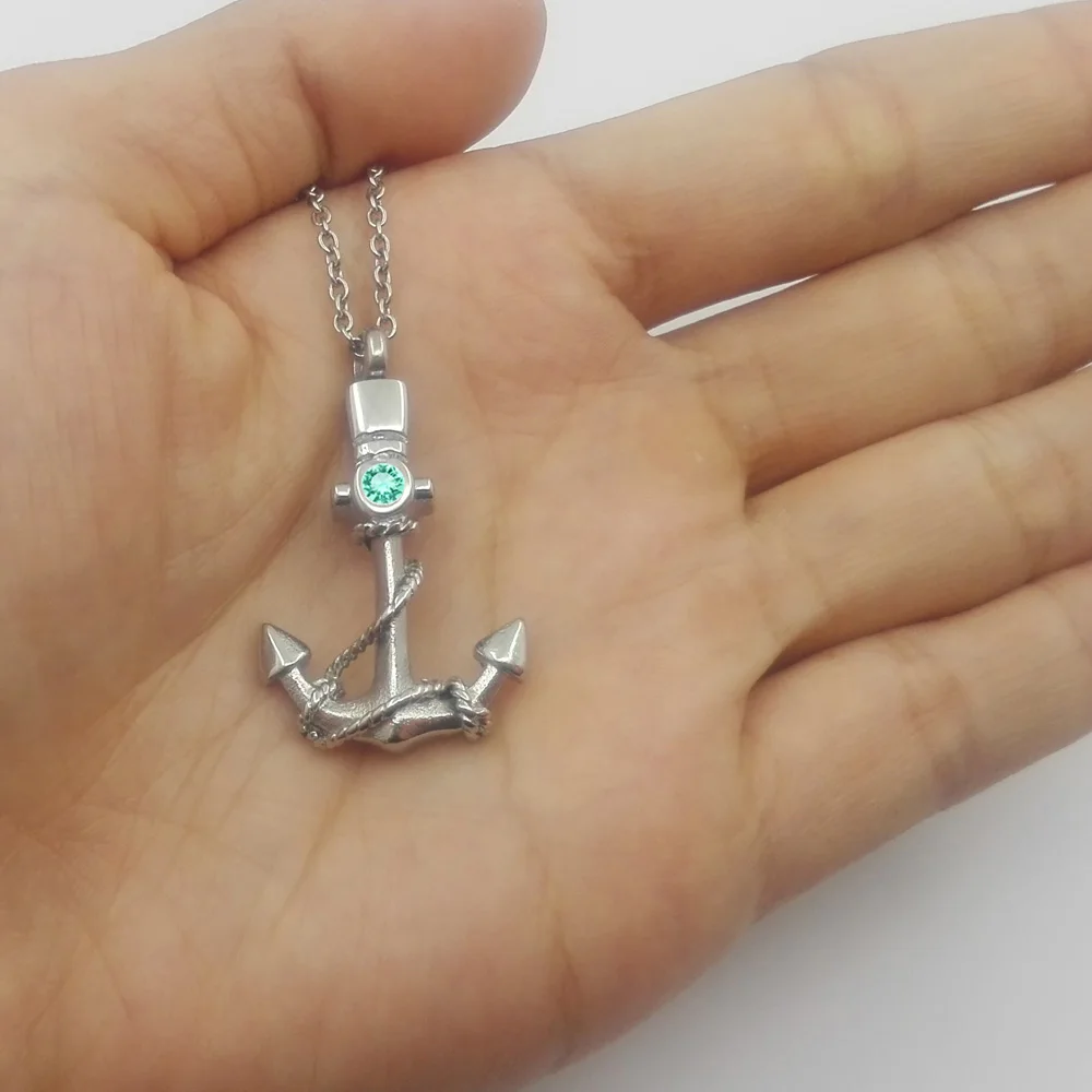 Ожерелье из нержавеющей стали с якорем для кремации ожерелье с 12 камнями по месяцу рождения ожерелье с урной для золы ювелирные изделия подвеска-сувенир