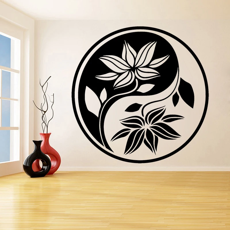 Виниловая настенная наклейка Yin Yang Будда, Йога, медитация, Цветочный декор, Настенная Наклейка для йоги, украшения дома, спальни, обои C106