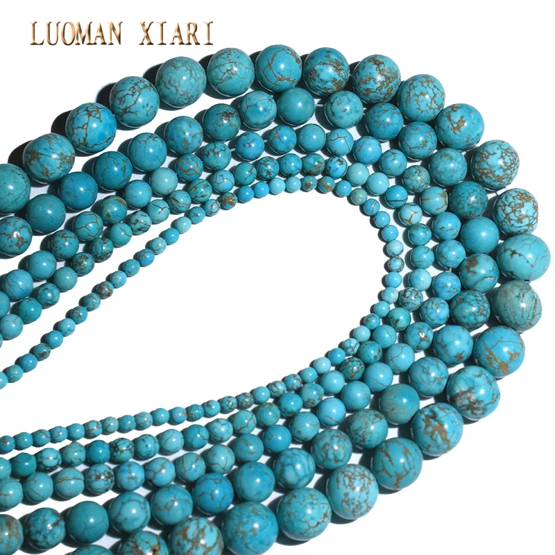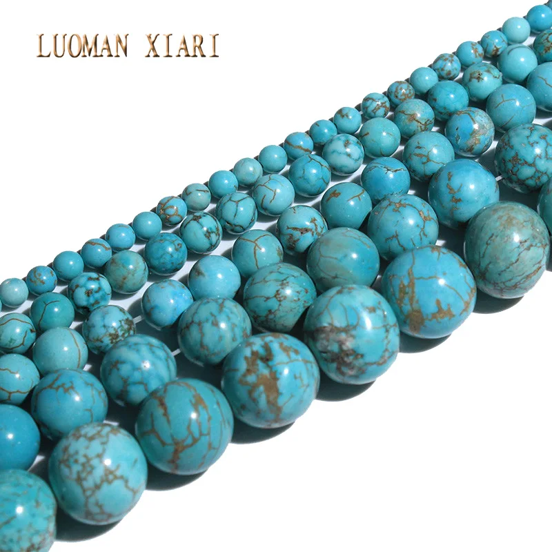 Тонкий натуральная бирюза круглые бусины из натурального камня для самостоятельного изготовления ювелирных изделий браслет ожерелье 4681012 мм нить 15,5''