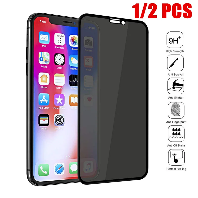 Закаленное стекло антишпионское с полным покрытием для iPhone 678 PlusSE 20205, Защита экрана для iPhone 11 Pro MAX, X, XS, XR
