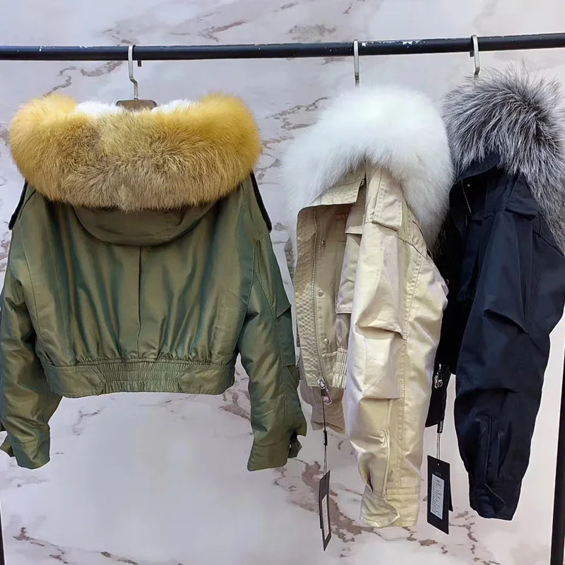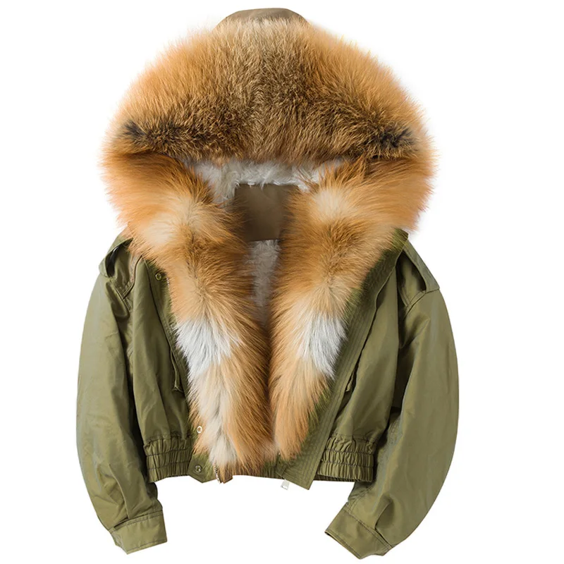 Janveny 2020 роскошная женская Съемная натуральная прочная линия меха ягненка натуральный Лисий Мех капюшон короткая женская парка Меховая куртка-бомбер