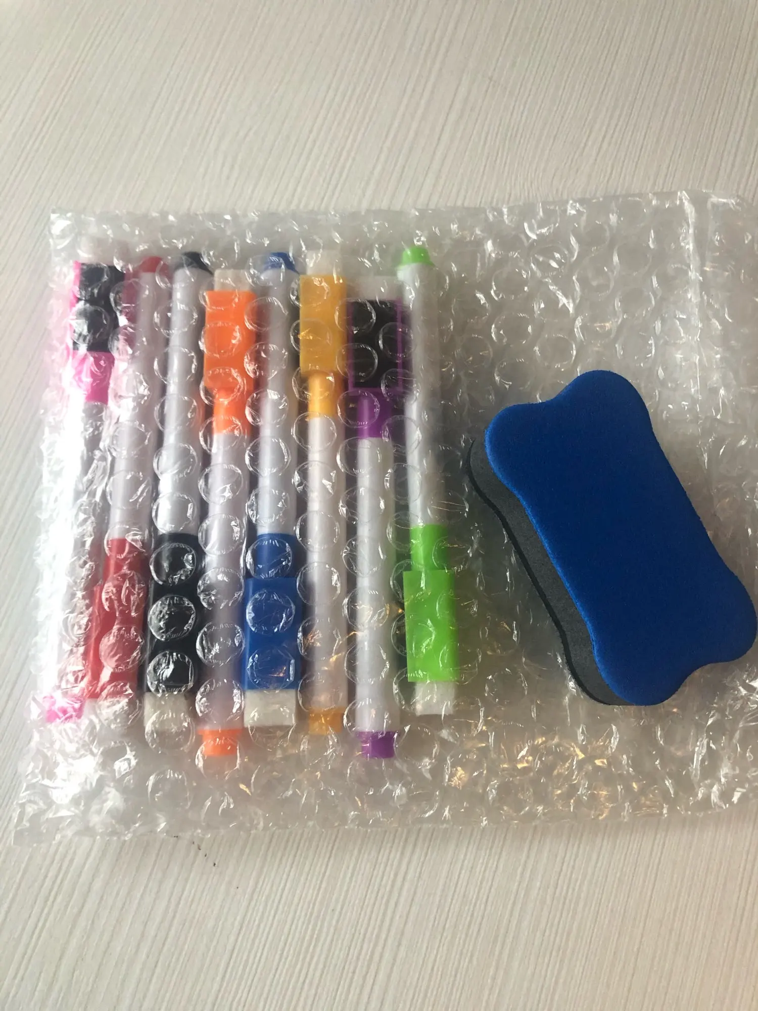 спасибо продавцу... товар качественный, много маркеров разных цветов со стиралками и ещё губка, все на магнитиках, держат хорошо... Рекомендую!!!
